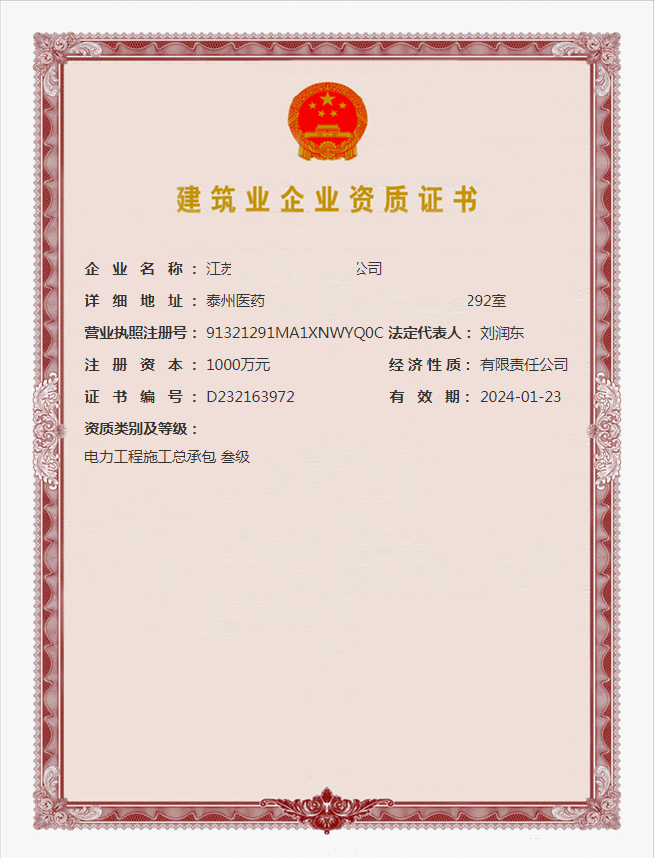 建筑业企业资质证书!